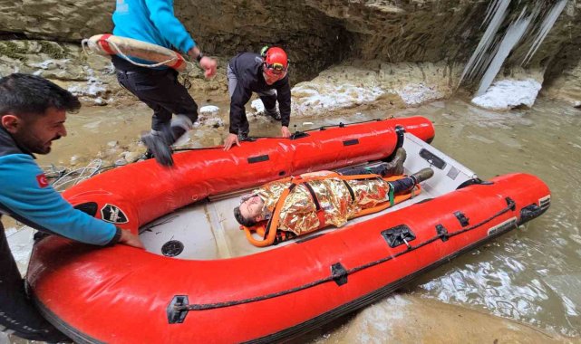 İhbar üzerine bölgeye hızlıca AFAD, UMKE, İtfaiye, Jandarma ve sağlık ekipleri ekipleri sevk edildi. Hatlarla kanyona inen AFAD ve itfaiye ekiplerinin müdahalesi ile kanyondan ters dönen ve suyun içinde yer alan otomobildeki 3 yaralı çıkarılırken, UMKE ekipleri ise mesai arkadaşlarının hipotermiye girmemesi için ateş yakıp, vücutlarını ovalayıp falyoya sardı. Zorlu doğa şartları altından botla kanyondan alınan 3 yaralı daha sonra sedye ile taşınarak bölgeden çıkarıldı.