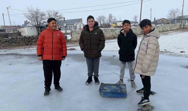 Akyaka ilçesi Duraklı köyünde bir araya gelen çocuklar, buz tutan derede kayarak gönüllerince eğlendi. İp bağladıkları kızakla birbirini çekerek düşe kalka kayan çocuklar renkli görüntüler ortaya çıkardı. Sırayla kızağa binen çocuklar hem tatilin keyfini çıkarıyor hem de enerji depoluyor. Dakikalarca birbirlerini çekerek kayan çocukların kayarken yaşadıkları mutluluk ise yüzlerine yansıdı.