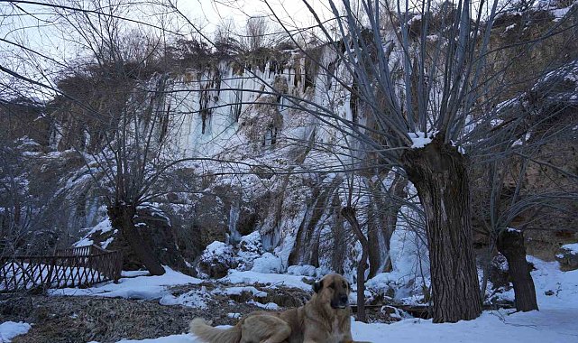 Erzincan'daki Girlevik Şelalesi, kentte etkili olan soğuk havayla birlikte buz tuttu. Şelalede 2 metrelik buz sarkıtları oluştu.