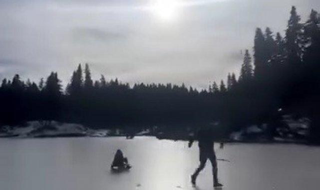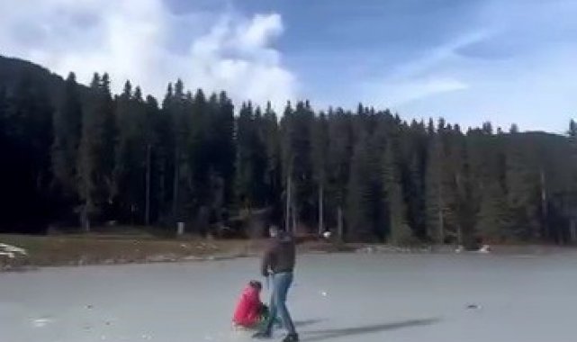 İlçeye bağlı bin 750 rakımlı Sarıçiçek Yaylası Göleti'nin yüzeyi soğuk hava nedeniyle buz tuttu. Bölgeye gelen bir aile buz tutan göletin üzerinde hem yürüdü hem de kızakla kayak keyfi yaşadı. O anlar cep telefonu kamerasıyla görüntülendi.