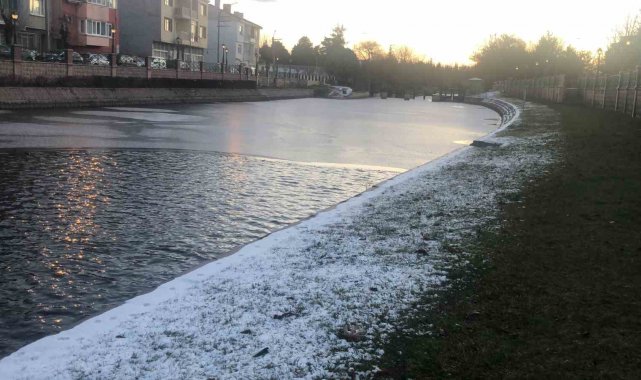 Eskişehir'de dondurucu soğukların etkisiyle Porsuk Çayı'nın yüzeyi buzla kaplandı. Sabahın ilk ışıklarıyla birlikte ortaya çıkan "yarısı buz, yarısı su" görüntüsü, kenti adeta bir kartpostala dönüştürdü.