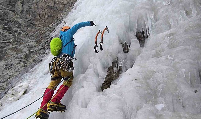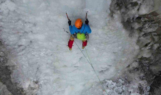 Buz tutan şelaleye nefes kesen tırmanış