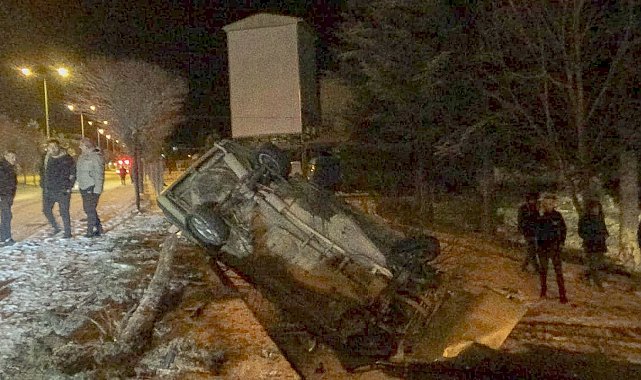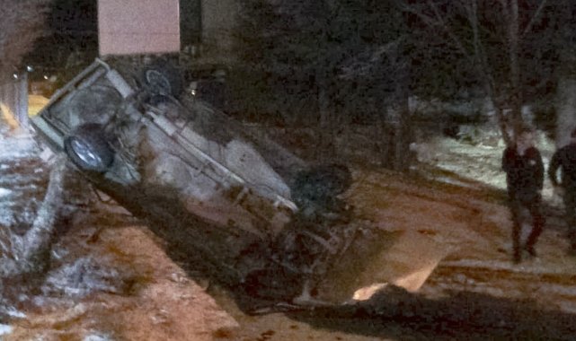 Buz tutan yolda otomobil takla attı: 1 yaralı