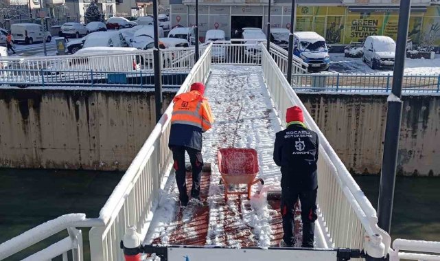 Kocaeli Büyükşehir Belediyesi, kar yağışının ardından araçların ve yayaların sorun yaşamaması için şehir merkezleri ve kırsal mahallelerde buzlanmaya karşı gerekli önlemleri aldı. Kaldırımları kar ve buzdan temizleyerek yayalar için güvenli hale getiren ekipler söz konusu çalışmaları özellikle vatandaşların yoğun olarak kullandığı bölgelerde gerçekleştiriyor. Büyükşehir ekipleri, kaldırımların dışında yaya üst geçitlerinde de kar temizleme çalışması yaparak yaya ulaşımının en önemli noktalarında güvenli geçişi sağlamak için çaba sarf ediyor.