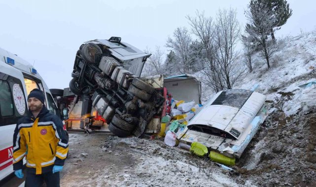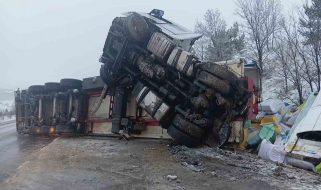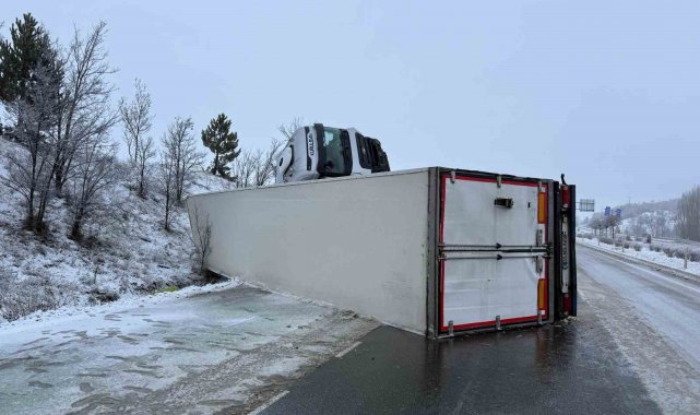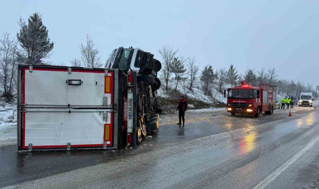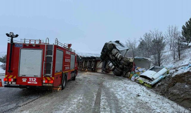 Buzlanan yolda kayan tır devrildi: 1 yaralı