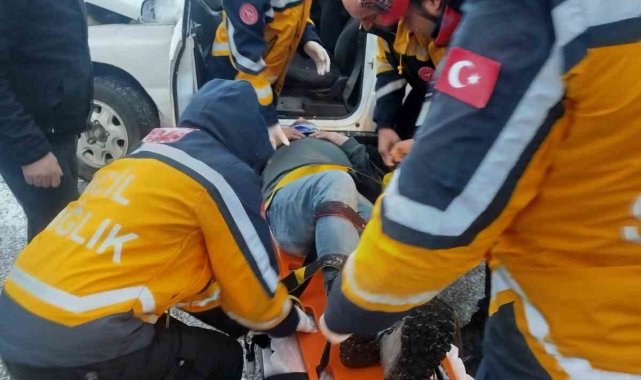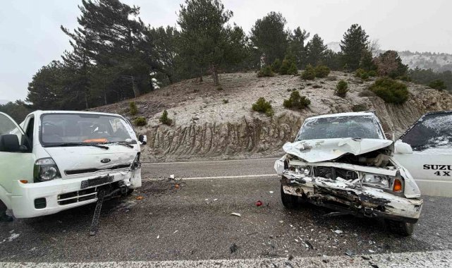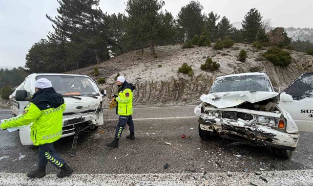 Buzlanma nedeniyle arazi aracıyla kamyonet çarpıştı: 2 yaralı