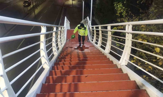 Ekipler, muhtemel kazaların önüne geçmek amacıyla hastane girişleri, yürüyen merdivenler ve üst geçitlerde solüsyon uygulaması gerçekleştirirken, yaya güvenliğinin sağlanması için yoğun kullanılan kaldırımlar ve durak önlerinde tuzlama çalışmaları da yapıyor. Riskli noktalar titizlikle kontrol edilirken, buzlanmanın etkili olduğu bölgelerde müdahaleler anında gerçekleştiriliyor.