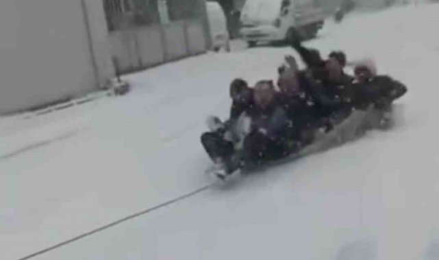 Öte yandan Yıldırım ilçesi Otosansit sanayi bölgesinde de esnaflar kendilerine oto sanayide kızak yaparak keyif yaptılar. O anlar da başka bir esnaf tarafından görüntülendi.