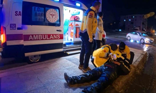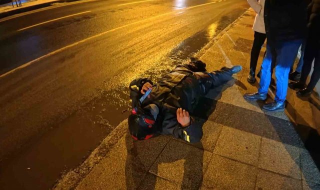 Buzlu yolda motosiklet kaydı, yola savrulan kurye yaralandı