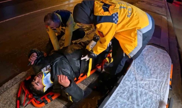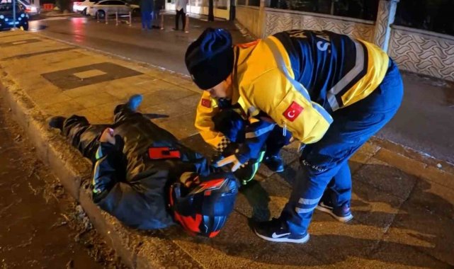 Aksaray'da buzlu yolda kayarak devrilen motosikletin sürücüsü yaralandı.