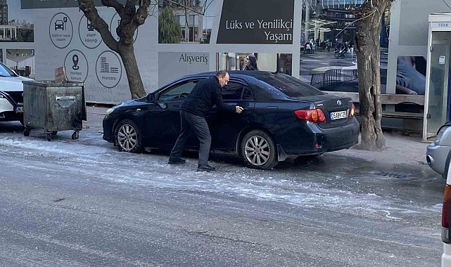 Yurt genelinde olduğu gibi Eskişehir'de de hava sıcaklıkları düşük seviyelerde seyrediyor. Sıcaklığın eksi derecelere kadar düşmesi nedeniyle don olayları meydana gelirken, geçtiğimiz sabah bir sürücü zeminin buzlanması ve kayganlaşması sonucunda otomobilini park ettiği yerden çıkartamadı. Aracı buzun üzerinde mahsur kalan sürücünün yardımına çevreden geçen bir vatandaş koştu. Sürücünün çeşitli manevralar yapması ve vatandaşın arkadan ittirmesi ile araç güçlükle hareket ettirildi.