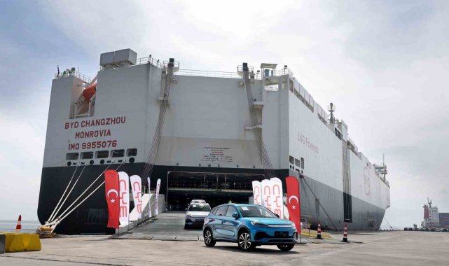 BYD'nin araç taşıma gemisi "BYD Changzhou", 39 günlük yolculuğun ardından Türkiye'ye ulaştı. 7 bin araç kapasiteli gemi, 5 Nisan'da Kocaeli Derince'deki Safiport Limanı'na yanaştı.