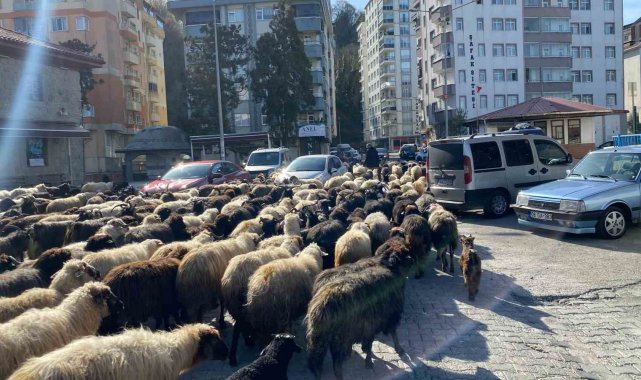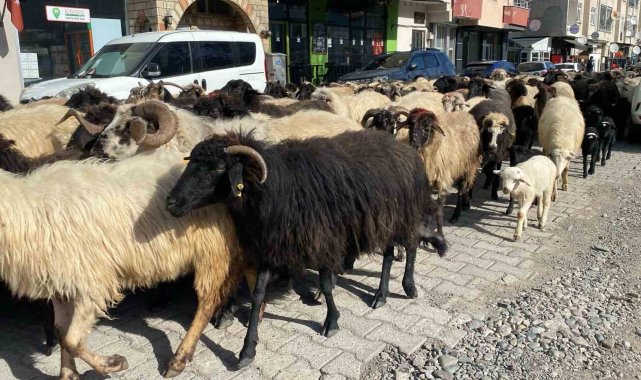Caddelerde koyun sürüsünü görenler şaşkına döndü! Artvin'de yayla göçü erken başladı