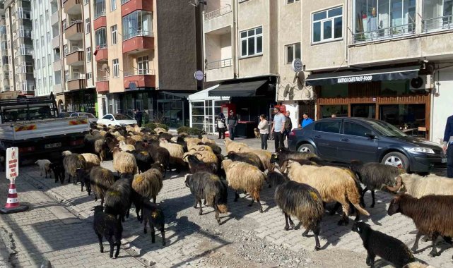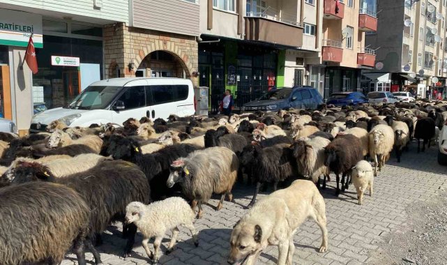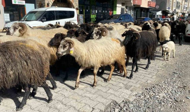 Cadde ve sokaklardan geçen koyunları gören vatandaşlar ise bu ilginç ve sıra dışı anı cep telefonları ile görüntüledi.