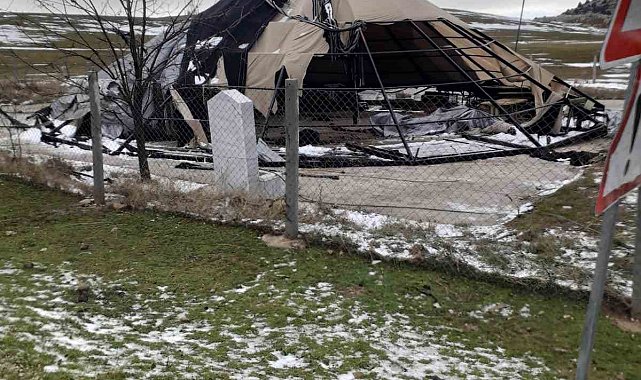 Afyonkarahisar'ın Dinar ilçesinde düğün ve eğlenceler için yapılan Yörük Kıl Çadır Salon şiddetli rüzgardan dolayı parçalandı.