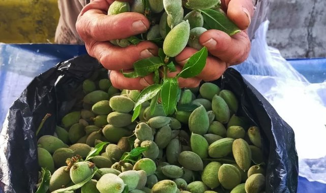 Türkiye'nin önemli tarım kentlerinden Aydın'da baharın müjdecisi olarak bilinen çağla bademler, pazar tezgahlarını süslemeye başladı. Çiçek açan badem ağaçlarının ilk meyvelerini verdiği ve baharın taze ürünlerinden biri olan çağla, Aydın pazarlarında 250 TL'den alıcı buluyor.