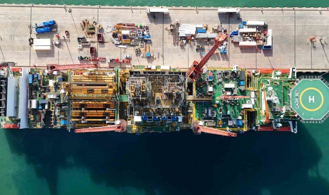 Türkiye'nin enerji filosunun yeni gemilerinden Çağrı Bey Derin Deniz Sondaj Gemisi, bugün Taşucu Limanı'ndan düzenlenen törenle Somali'ye uğurlanacak. Tören öncesi gemi dronla görüntülendi.