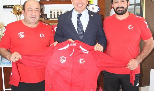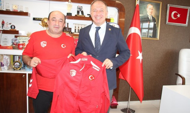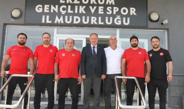 Erzurum'da yüksek irtifa kampı yapan ve Avrupa ile Dünya Şampiyonalarına hazırlanan U20 Güreş Milli Takımının teknik heyeti, Erzurum Gençlik ve Spor İl Müdürü Levent Çakmur'u ziyaret etti. U20 Takım Teknik Direktörü Nesrullah Baysal ile yardımcı antrenörler Ender Coşkun, Abdulhamit Altun, Nazım Kara, masörler Osman Ok, Mehmet Özmüş ve Türkiye'nin olimpik güreş hakemlerinden Yusuf Sadri Kishalı ziyarette yer aldı. Oldukça samimi bir ortamda geçen Ziyarette Teknik Direktör Nesrullah Baysal ile Antrenör Ender Coşkun, İl Müdürü Levent Çakmur'a milli forma hediye etti.