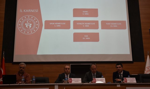 Erzurum Gençlik ve Spor İl Müdürlüğü 2026 Nisan ayı koordinasyon Toplantısına İl Müdürü Levent Çakmur başkanlık etti. Spor Hizmetleri Müdürü Erdoğan Dönmez, Gençlik Hizmetleri Müdürü Metin Günay ile ilçe ve şube müdürlerinin katıldığı toplantıda konuşan Erzurum Gençlik ve Spor İl Müdürü Levent Çakmur, "Göreve geldiğimiz günden beri sporda, gençlik hizmetlerinde, tesis yatırımlarında, yurt ve eğitim faaliyetlerinde büyük mesafeler kat ettik. GSB İl Karnesinde aylardır sporda ve gençlik hizmetlerinde Türkiye birincisiyiz. Yurt ve Eğitim faaliyetlerinde de büyük bir aşama kat ettik. Buz sporları salonlarımızın çehresini değiştirdik. Palandöken ve Yakutiye Spor Kampüslerimizin ışıl ışıl olmasına sağladık. Buz salonlarımızın bünyesinde açtığımız bireysel sporlar antrenman salonları sayesinde sporcu patlaması yaşadık. Palandöken Spor Kampüsümüze inşa ettiğimiz boks, badminton, güreş ve jimnastik salonlarımız sayesinde sporun önemli ölçüde nefes almasını sağladık. Yakutiye 3 binlik buz hokeyi salonu ve 500'lük buz salonumuzda da kurumsal ve vizyon çalışmalarında sona geldik. Artık kurumsallık ve vizyon çalışmalarını tamamlayarak sporda yeni bir misyon üstleneceğiz. Kış ve yaz sporlarında olimpiyatları kovalayan sporcular yetiştireceğiz" dedi.