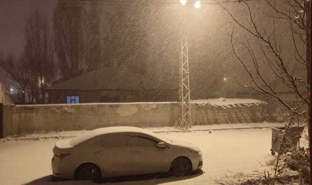 Van'ın Çaldıran ilçesinde dün akşam etkili olan kar yağışı ilçeyi beyaza bürüdü.