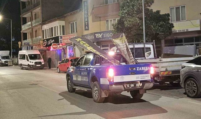 Nilüfer Belediyesi zabıta ekipleri, Çalı Mahallesi'nde yaya ve engelli yollarını işgal eden tüm materyalleri sabah erken saatlerde topladı.