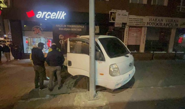 Çalıntı araçla yakıt alırken polisi gördü, kaçarken direğe çarptı
