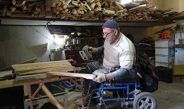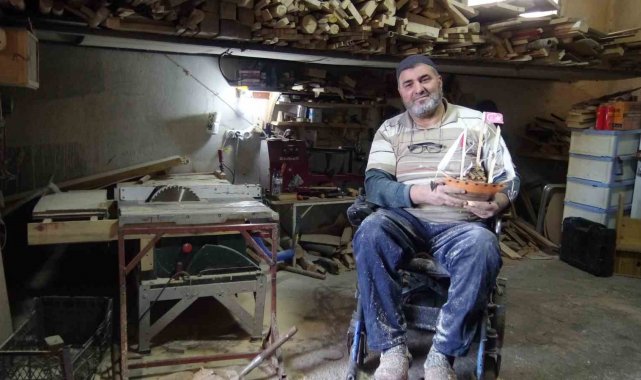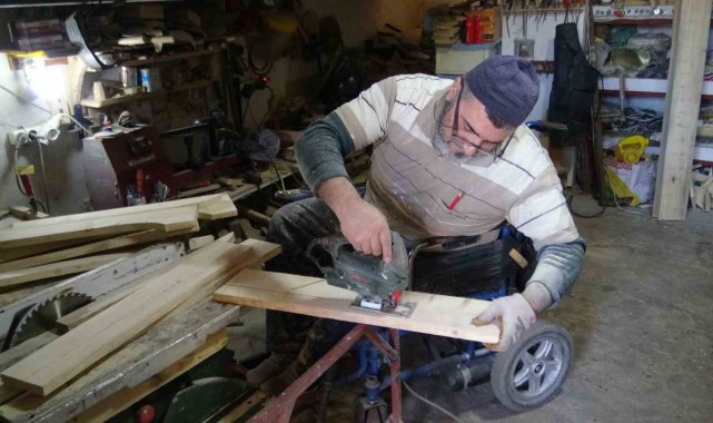 Antalya'da inşaatta çalışırken 3'üncü kattan düşüp tekerlekli sandalyeye bağlı kalan 55 yaşındaki Heybetullah Yarba, Yolağzı Mahallesi'ndeki evinin altında kurduğu marangoz atölyesinde ahşaptan ürünler yapıyor. Yaptığı ürünleri satarak 4 çocuğunu okutan Yarba, "Çok şükür kendi işimle gurur duyuyorum. Herkesin çalışmasını isterim, kendini boşa bırakarak dünyaya küsmesin" dedi. Heybetullah Yarba'nın çalışma azmi ve hayata tutunma çabası görenlerin takdirini toplarken, ürettiği ahşap ürünlerin satışını yaparak çocuklarının ihtiyacını karşılıyor.