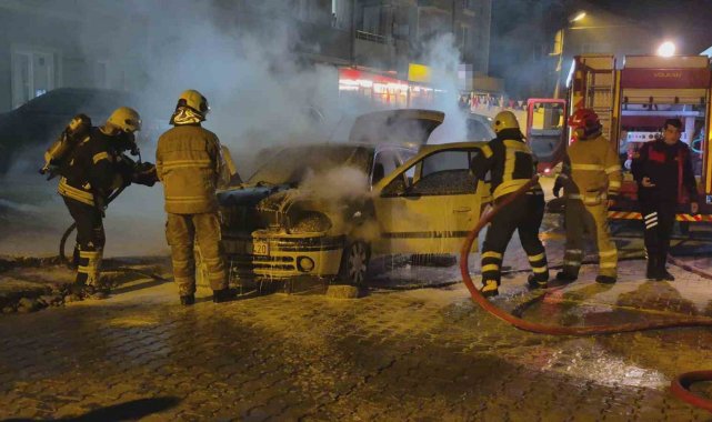 Çalıştırdığı aracı bir anda alev aldı, sürücü son anda kurtuldu