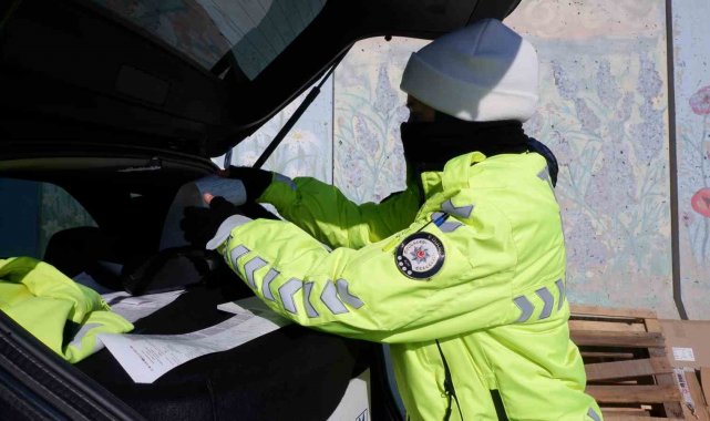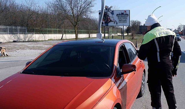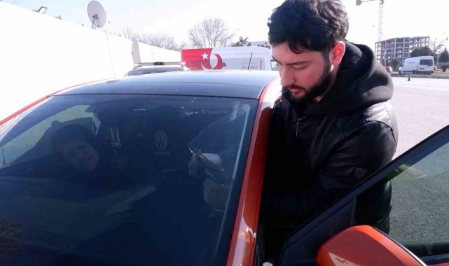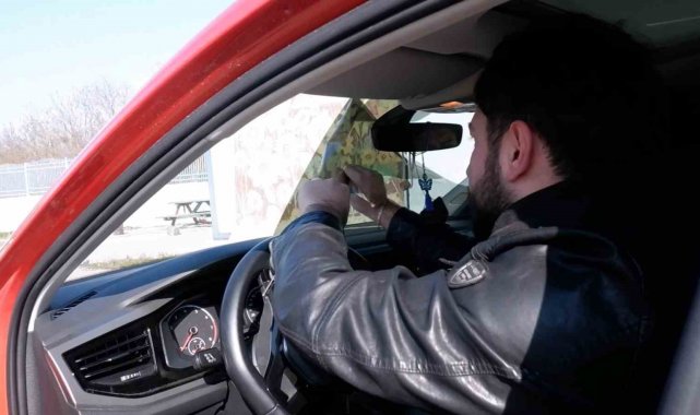 Edirne'de trafik denetimi sırasında aracında cam filmi olan sürücüler, ceza yememek için filmleri söktü.