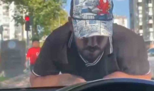 Edinilen bilgiye göre, Köşk Mahallesi'nde meydana gelen olayda, trafik ışığında bekleyerek vatandaşların zorla araçlarının camını silen H.P. (24) isimli şahıs, yine bir otomobilin daha zorla camını silmek istedi. Vatandaşların camlarını silinmesini istememesi üzerine otomobilin kaputuna yatan H.P., otomobilin ilerlemesine izin vermedi. Otomobil sahibi tarafından görüntüsü çekilen H.P. para alamaması ve görüntüsünün çekildiğini fark edince otomobil sürücüsüne tehditler ve hakaretler savurdu. Polis ekipleri tarafından yapılan çalışmalarda H.P. yakalandı. Emniyette ifadesi alınan H.P., sağlık kontrolünün ardından çıkarıldığı mahkemece, 'silahlı yağmaya teşebbüs' suçundan tutuklanarak, cezaevine teslim edildi.