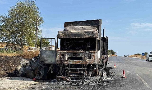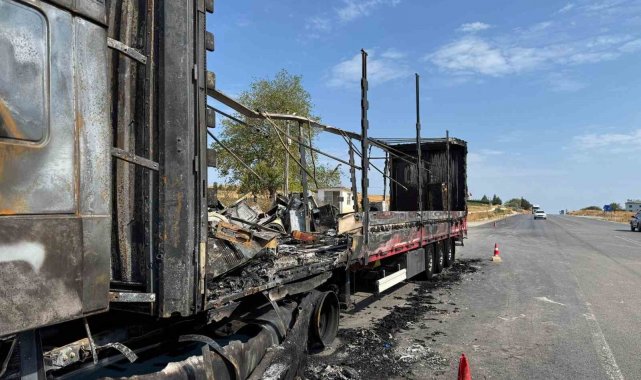 Çamaşır makinesi yüklü tır alev topuna döndü