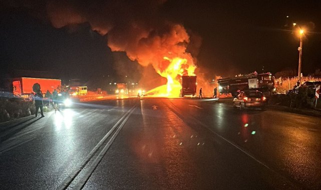 Edinilen bilgiye göre, olay dün gece saat 01.00 sıralarında İznik-Yenişehir yolunda, Kırsal Derbent Mahallesi kavşağında meydana geldi. Üzerinde çamaşır makinesi yüklü olduğu öğrenilen Murat Yamanarda (51) idaresindeki 55 AIY 740 tır, seyir halindeyken bir anda yanmaya başladı. Durumu fark eden sürücü, aracını yol kenarına çekerek yardım istedi. Olay yerine çok sayıda itfaiye ve jandarma ekibi sevk edildi. Bölgeye ilk ulaşan itfaiye ekibi zaman geçirmeden müdahaleye başladı. Söndürme çalışması yapılırken alev topuna dönen tırda meydana gelen patlama, ekiplere zor anlar yaşattı. Alevlerin arasında kalan 2 itfaiye erinin yanmaktan son anda kurtulduğu anlar kameralara yansıdı. Tır ve üzerindeki onlarca çamaşır makinesi tamamen yanarak kullanılmaz hale geldi. Olayla ilgili başlatılan tahkikat sürüyor.