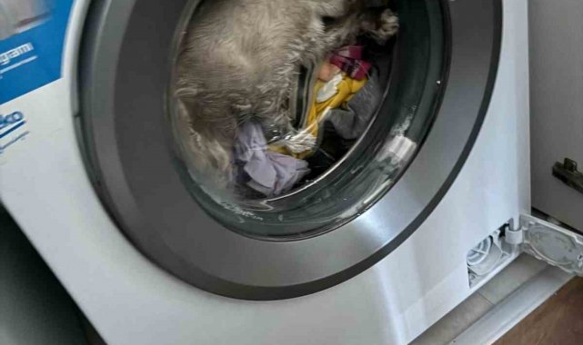 Kahramanmaraş'ta bir evde çamaşır makinesine girip mahsur kalan kedi itfaiye ekiplerince kurtarıldı.