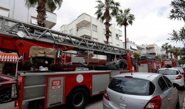 Antalya'da bir dairede çamaşır makinesinden çıkan yangın apartman sakinlerini sokağa döktü. Oldukça korktuğu gözlenen ev sahibi kadını komşuları teselli etti.