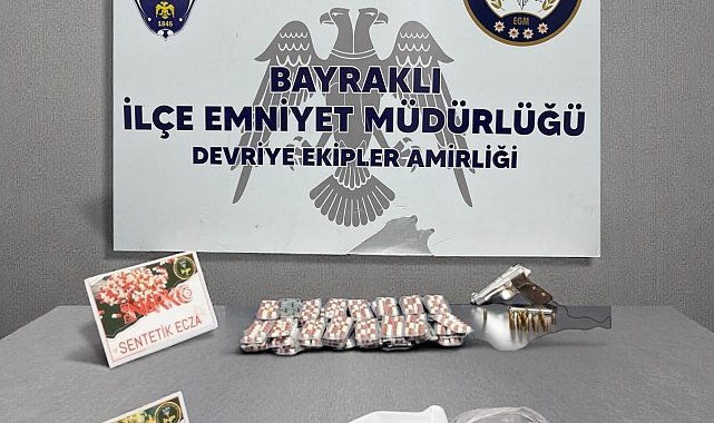 Bayraklı İlçe Emniyet Müdürlüğü Devriye Ekipler Amirliği ve Narkotik Suçlarla Mücadele Şube Müdürlüğü Sokak Suçları Büro Amirliği ekipleri, K.K. (32) adlı bir kişinin uyuşturucu ticareti yaptığının belirlenmesi üzerine savcılık izniyle adrese operasyon gerçekleştirdi. Yapılan aramada evdeki çamaşır makinesi içerisinde 896 adet uyuşturucu nitelikli hap, 66 gram esrar, ruhsatsız tabanca ve 26 adet fişek ele geçirildi.