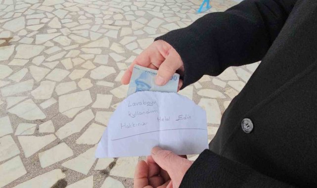 Camide tuvaleti kullandı, notla birlikte para bıraktı