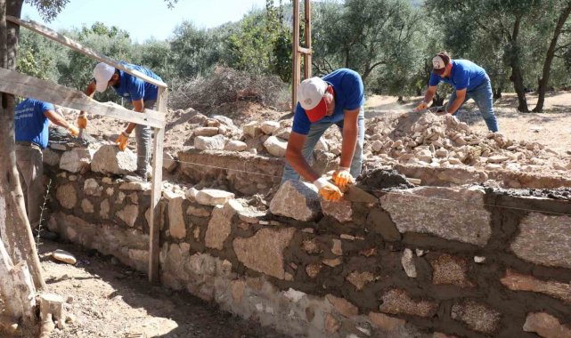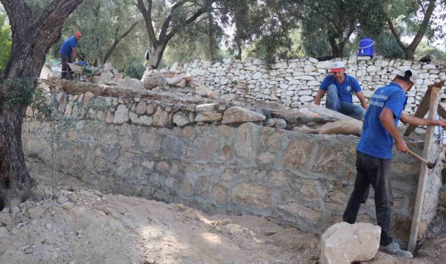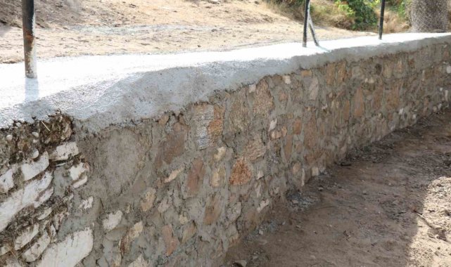 Aydın'ın Bozdoğan ilçesinde çalışmalarını sürdüren belediye ekipleri, Çamlıdere Mahallesi'ndeki riskli yollarda istinat duvarı yaparken, deforme olan okul bahçe duvarını da yeniledi.