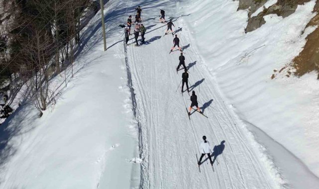 Okulda yapılan seçmelerden seçilerek spora başladığını ifade eden 14 yaşındaki Nergis Durmuş, "Sabah geliyoruz ve kayak takımlarımızı alıyoruz. Önce ısınma hareketleriyle başlayan antrenmana kayarak devam ediyoruz. Eskiden parkurumuzu kendi imkanlarımız ile açıyorduk ama şimdi snowtracklarımız var. Onlarla hallediyoruz" ifadelerini kullandı.