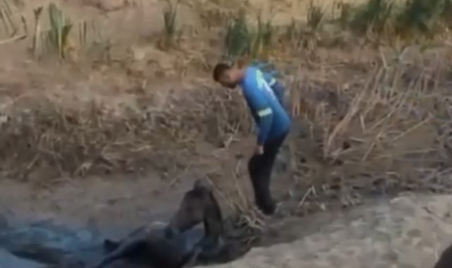 Edinilen bilgilere göre, sabah saatlerinde ilçeye bağlı Demirkuyu köyündeki çobanlardan biri, hayvanlarını otlattığı sırada çamura saplanmış bir atı fark etti. Çobanın durumu köy halkına bildirmesi üzerine köydekiler ile birlikte harekete geçen İbrahim Atay, aracına bağladığı ip yardımıyla atı çamurdan çekerek kurtardı.