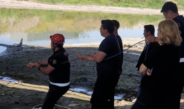 Hatay'da çamura saplanarak Asi nehrinde mahsur kalan vatandaşı itfaiye kurtardı.