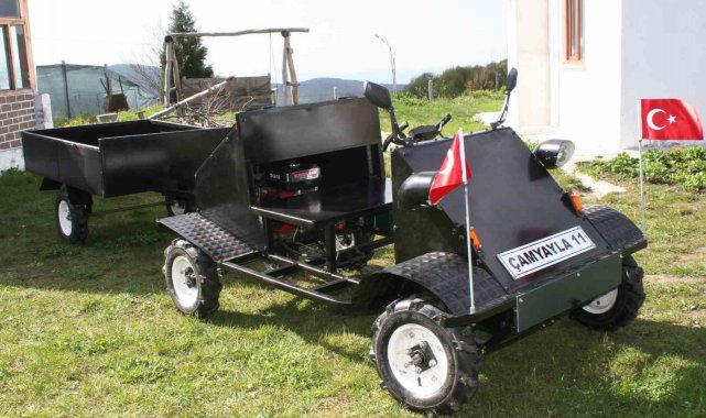 Çapa motoru kullanarak yapılan aracın yaklaşık 22 bin liraya mal olduğunu anlatan Muhtar Gülnihal, "Aracımız saatte 30 kilometre yol alabiliyor ve ortalama 200 kilo yük taşıyor" diye anlattı.
