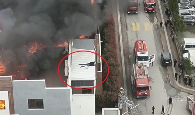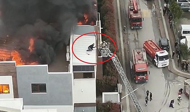 Öte yandan korku dolu anlar dron ile havadan görüntülendi. Görüntülerde çatı katını saran alevler ve gökyüzünü kaplayan yoğun duman dikkat çekti.