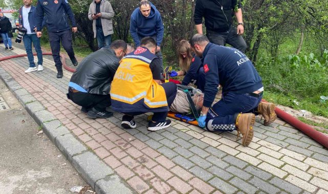 Bursa'da 6 katlı bir binanın çatı katında çıkan yangında, metrelerce yüksekte alevlerin arasında mahsur kalan bir işçinin kurtarıldığı anlar ortaya çıktı. Yangının, tadilat sırasında kullanılan yanıcı polyester ve zift malzemelerinin oluşturduğu ısı nedeniyle başladığı belirlendi. Alevler 1 saati aşkın müdahale sonrası kontrol altına alınırken, dumandan etkilenen 2 işçi hastaneye kaldırıldı. Söndürme çalışmasına 17 itfaiye aracı katıldı.
