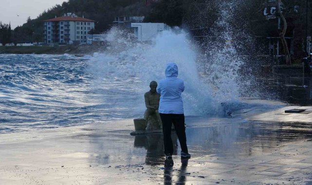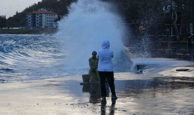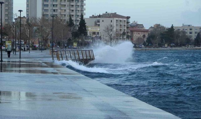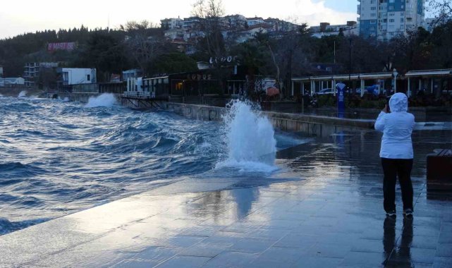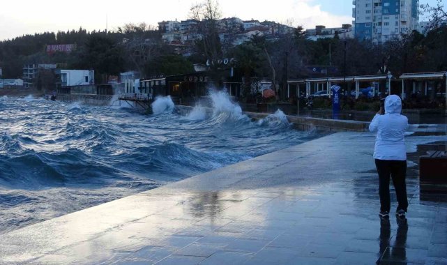 Çanakkale'de saatteki hızı zaman zaman yaklaşık 90 kilometreyi bulan lodos fırtınası nedeniyle dev dalgalar kordonboyunda sahili adeta dövdü. Sahile ulaşan dev dağalar eşliğinde vatandaşlar fotoğraf çektirdi.