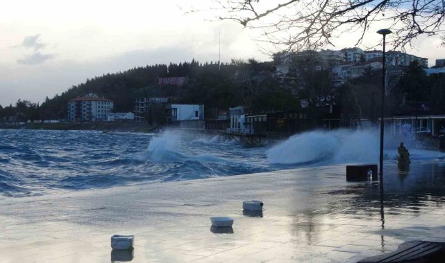 Çanakkale Boğazı fırtına nedeniyle kapatıldı, feribot seferleri durdu, dev dalgalar sahili dövdü