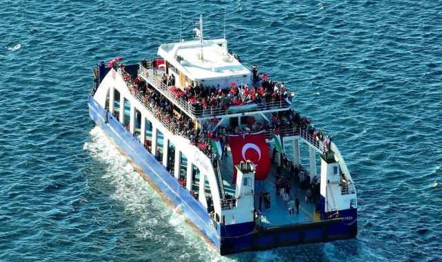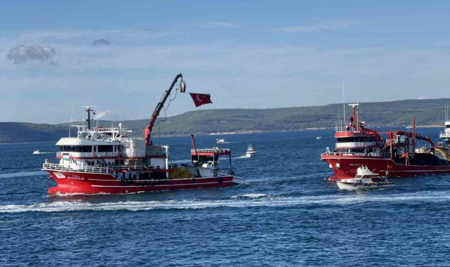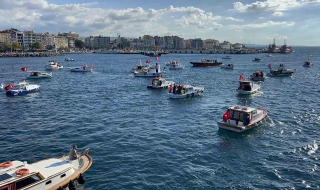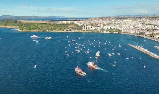 Çanakkale Boğazı'nda Türk ve Filistin bayraklarıyla donatılan tekneler, Gazze'ye insani yardım ulaştırmak amacıyla yola çıkan ve İsrail'in saldırısına uğrayan Küresel Sumud Filosu'na destek için tur attı.