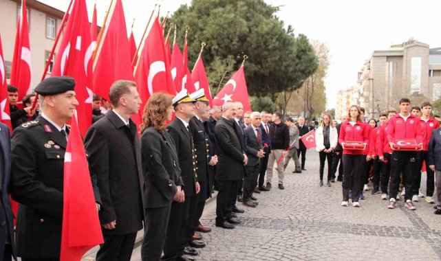Daha sonra halk oyunları ve mehter gösterisi sergilendi. Şehitler diyarı Gelibolu Yarımadası'ndan alınan toprak, zaferin kazanıldığı Çanakkale Boğazı'ndan alınan deniz suyu ve rengini şehitlerimizin kanından alan Türk bayrağından oluşan kutsal emanetler, Vali Ömer Toraman tarafından bu yıl Ankara'ya götürecek olan atletler Mehmet Serbes ve Nihal Akman'a teslim edildi.