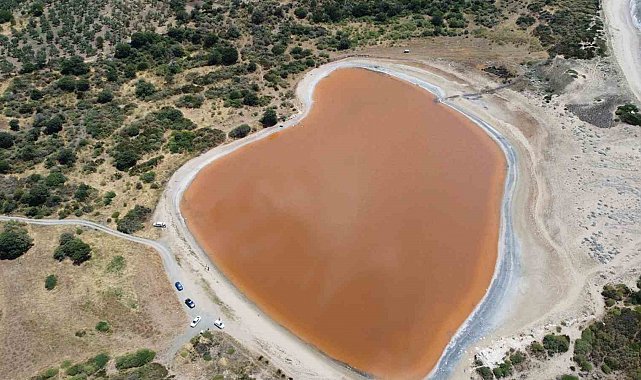 Çanakkale'nin Ezine ilçesine bağlı Dalyan köyündeki Alexandria Troas Antik Kenti'nin 2 bin yıllık iç limanı, zamanla denizle bağlantısı kesilince, doğa şartlarına bağlı olarak kalp şeklini aldı. İçerisindeki tuzlu su da yılın belli dönemlerinde pembe renge dönüşünce ortaya kalpli pembe göl çıktı. Kalpli göl, bugünlerde yeniden pembeleşmeye başladı. Pembeye bürünen ve kalp şekli ile dikkati çeken 'Kalpli Göl', dron ile havadan görüntülendi.