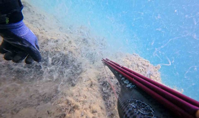 Zıpkınla amatör balıkçılık yapan Kerem Atasev, Çanakkale Boğazı'nda gerçekleştirdiği dalışta müsilajın deniz dibindeki görünmez yüzünü görüntüledi. Görüntülerde denizin dibinde oluşan müsilaj yoğunluğu görenleri şaşırttı.