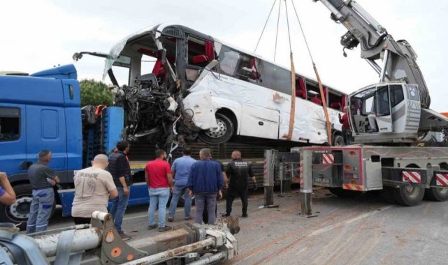 Kaza, dün saat 12.45'te Ezine ilçesi Anıtyağ mevkiinde meydana gelmişti. Çanakkale-Ezine karayolunda Ezine'den Çanakkale istikametine seyir eden Oktay Batır (35) yönetimindeki 33 ANK 274 plakalı tomruk yüklü kamyon, sürücüsünün direksiyon hakimiyetini kaybetmesi sonucu refüjü geçerek karşı şeride devrilmişti. Kazada kamyonda yüklü tomruklar yola savrulmuştu. O sırada Çanakkale'den Ezine istikametine giden 34 DCJ 400 plakalı otomobil ve İstanbul'dan İzmir'e giden, içerisinde 22 yolcu ve 3 personel bulunan Truva Turizm'e ait 17 AHT 624 plakalı yolcu otobüsü tomruklara çarparak şarampole yuvarlanmıştı. Kaza mahallinde olan diğer sürücüler kazayı polis, jandarma ve sağlık ekiplerine bildirmişti. Kazada 5 kişi olay yerinde, ambulansla hastaneye sevk edilen 3 kişi ise hastanede hayatını kaybetmişti. Kazada yaralanan 2'si ağır 21 kişinin ise hastanelerde tedavileri sürüyor. Kazada ölenlerin kamyon şoförü Oktay Batır, otobüs şoförü Mehmet Altınok, muavin Semih Atmaca ile otobüsteki yolcular Samettin Kayatekin, Orhan Şale, Kamile Başkurt, Fatma Bektaş ve Aynur Kocabey olduğu öğrenildi.